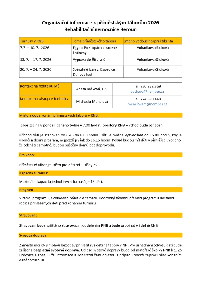 Aktuality Organizační pokyny Letní příměstský tábor 2026 Přidáno: březen 2026 Příměstský tábor 2026 březen 2026 Příměstský tábor Cesta kolem světa červenec 2021