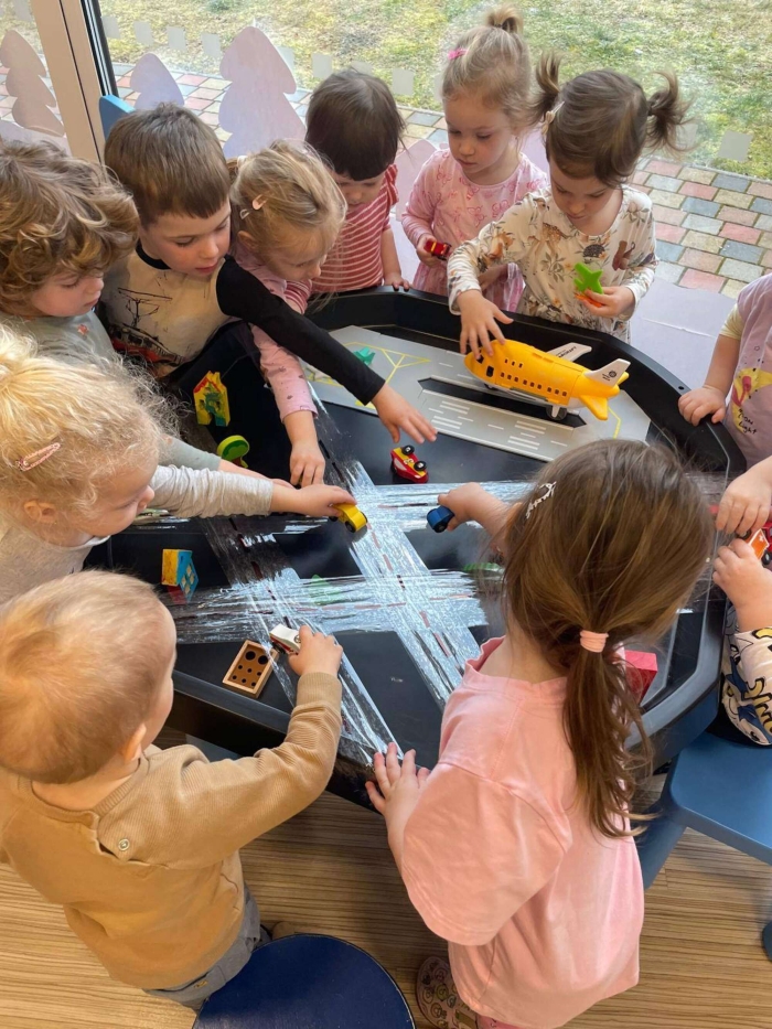 V rámci dopravní výchovy jsme si s dětmi povídali o dopravních prostředcích. Děti si vyzkoušely sestavit auto se základních geometrických tvarů, což je moc bavilo.
