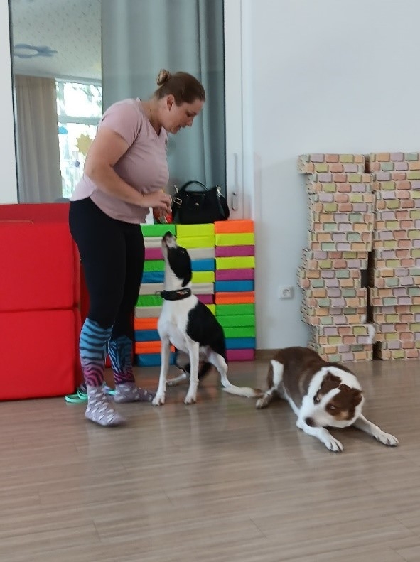 Děti se také seznámily s canisterapií – mohly si pohladit vycvičeného pejska a dozvědět se, jak tato terapie pomáhá lidem a co všechno takoví pejskové umí. Práce s pejsky se dětem moc líbila.