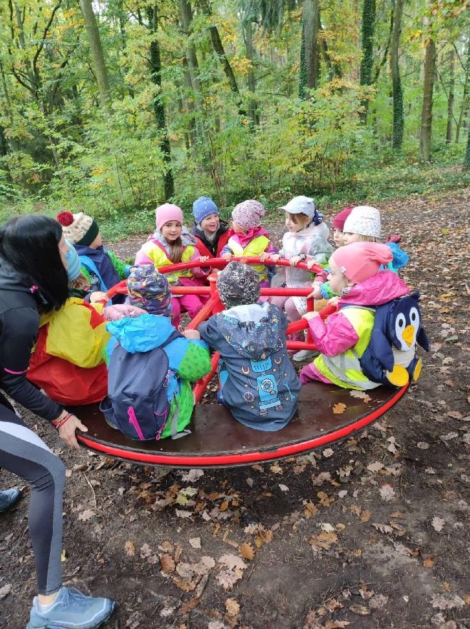 Při příležitosti povídání o podzimu v lese jsme se s dětmi vydali na procházku do Dražovky. Sluníčko se nám ten den zrovna schovalo, ale dětem to vůbec nevadilo. Děti vyrazily v pláštěnkách a užily si pravé podzimní počasí. Viděly barvy podzimu v lese, nasbíraly spoustu přírodního materiálu na vyrábění a nakonec si zařádily na houpačkách a prolejzačkách.