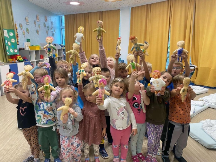Na konci října jsme ještě zvládli namalovat hadrové panenky, které pro nás ušily babičky v domově pro seniory.
